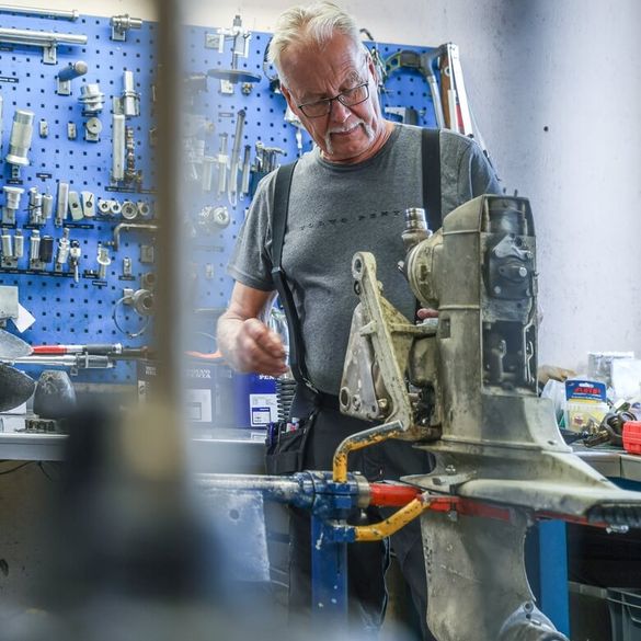 I vår verkstad arbetar Tobias, Anders, Tommy, Elias och Viktor med motorservice, reparationer och renoveringar av utombordare och inombordare. Vi utför även motorbyten och installation av navigationssystem för fritidsbåtar.